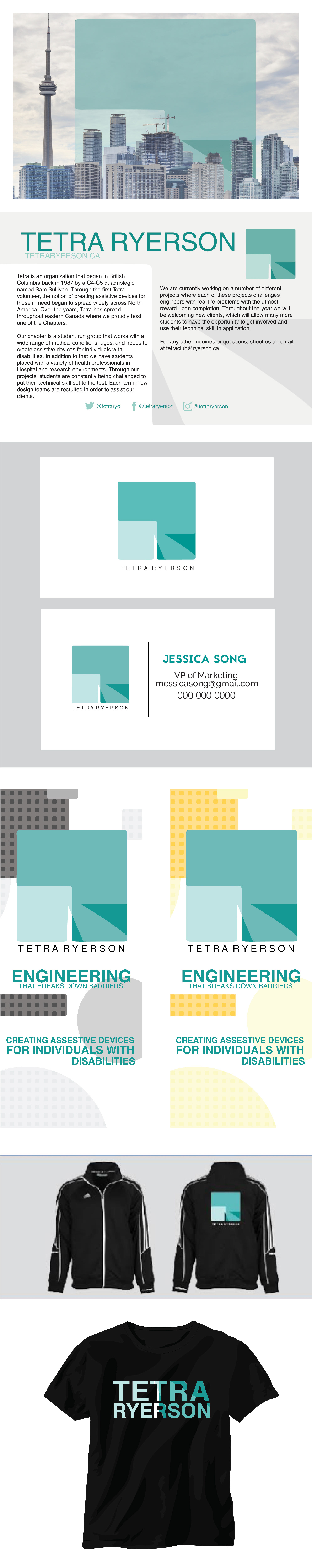 Merchandising I have made over a few months for Tetra Ryerson. Postcards, business cards, pull-up banners, jackets, and t-shirts.